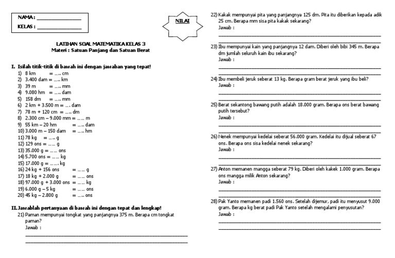 Tali yang panjangnya 1 meter sama dengan. Jawaban a dan c benar. Soal satuan berat ini untuk kelas 2 jenjang sd dan masuk dalam tema 6. I by tim pembimbing gsi mata pelajaran. Di sebuah karung terdapat 20 kg beras.